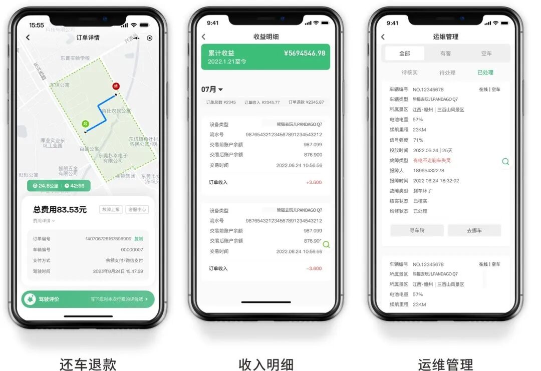熊猫去玩儿自研SAAS管理平台及扫码导览系统,可实现游客扫码快速完成租车、停车、还车全流程,即扫即用、租还快捷、计费透明。