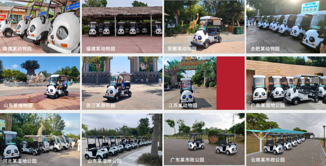 例如国家A级景区,占地面积大,动物场馆分散,游客步行游览耗时费力。代步车成为游客游园刚需,不仅提高了游客游览效率和景点到达率,其独特的熊猫造型也成为了园区内一道移动的风景线,深受孩子们喜爱。