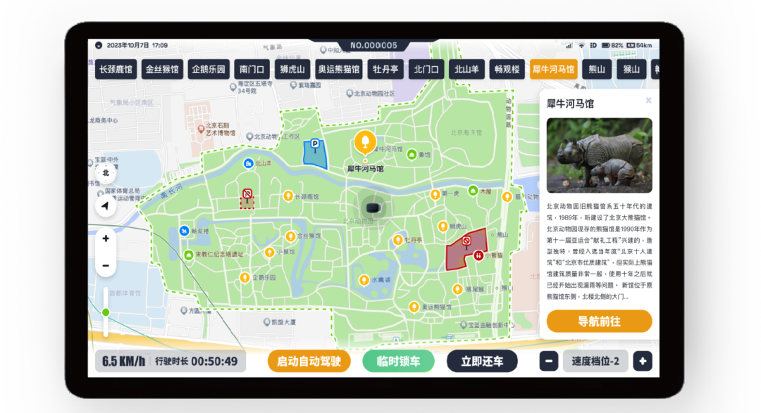 通过车载智能系统,可实现语音互动、景区内部商业点导航、自动化的调度运营等增值服务。