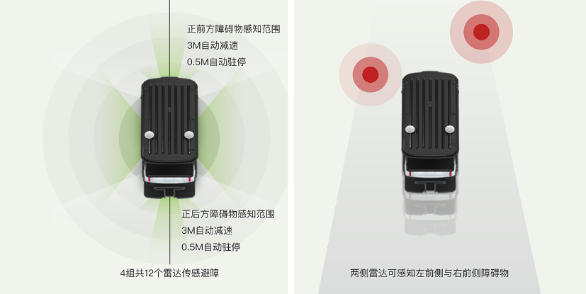 在安全保障方面,我们构建了多层防护体系:关键材料选择了车规级线控底盘,快速响应指令,安全有保障。